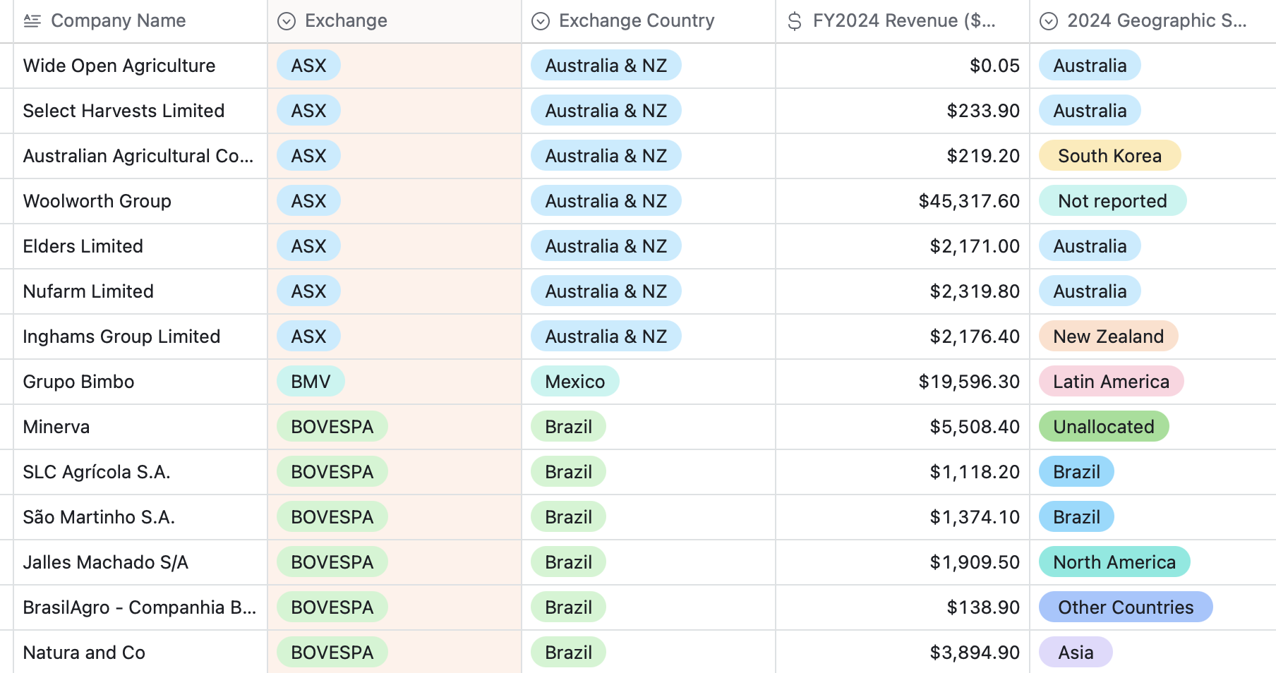 Data to inform you about regenerative agriculture practices so you can engage your portfolio, and help change our food system. Data Visualizations Full Data Set Environmental Heat Map Geographic Segments and Revenue Full Data Set Regenerative Heat Map
